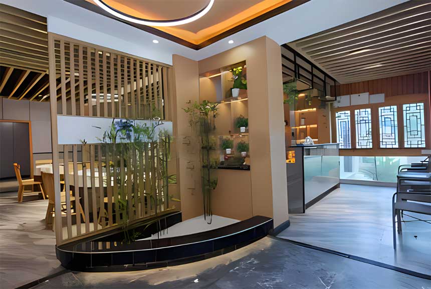 設(shè)施環(huán)境:餐廳部環(huán)境幽雅、設(shè)施齊全、低消費(fèi)、高檔次,可供100余人同時(shí)就餐?头坎浚(biāo)間、單間、機(jī)麻房),擁有WIFI、空調(diào)、電視、獨(dú)衛(wèi),24小時(shí)供熱水、開(kāi)水,可同時(shí)容80余人住宿。