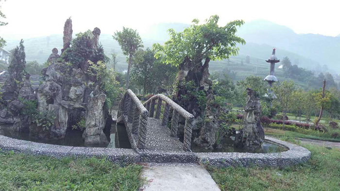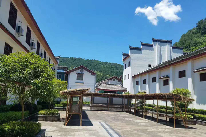 臨碧水而建,環(huán)境古雅,穿過綠樹叢蔭,漫步在石頭鋪成的小道上,耳聞啾啾鳥鳴,看垂柳依依,盡情呼吸新鮮空氣。