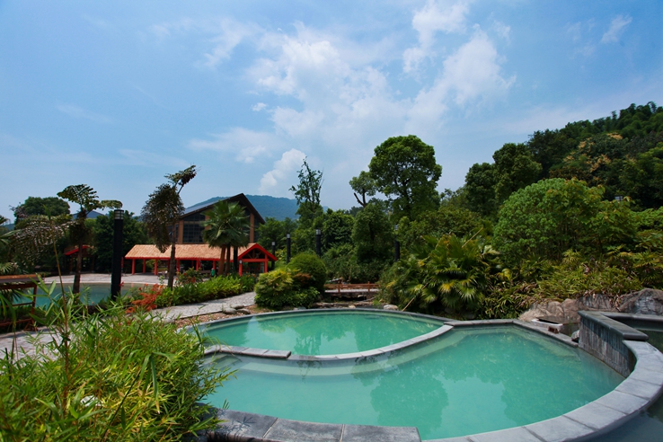 重慶龍溫泉中心,“山、水、林、泉”渾然天成。溫泉水量豐富,日流量4000多立方米,該溫泉品質(zhì)優(yōu)良,富含硫、鈣、鉀、鎂等70余種微量元素,屬硫磺醫(yī)療礦泉,常年水溫42°C左右,號(hào)稱(chēng)西南第一泉。溫泉水隨礦物質(zhì)的分泌量不同常呈藍(lán)、綠、紫、無(wú)色等多種顏色變化,素有“彩色溫泉”之稱(chēng)。