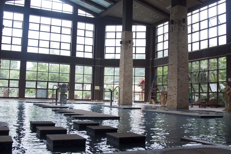 溫泉服務(wù)大樓:為樓閣式分上下二層,總經(jīng)營(yíng)面積約5200平方米(一層經(jīng)營(yíng)面積約2678平方米、二層經(jīng)營(yíng)面積約2222平方米)。豪華典雅,大氣磅薄,充分自然地溶入龍文化元素、佛道養(yǎng)生文化元素,超大氣、原生態(tài)、純自然。