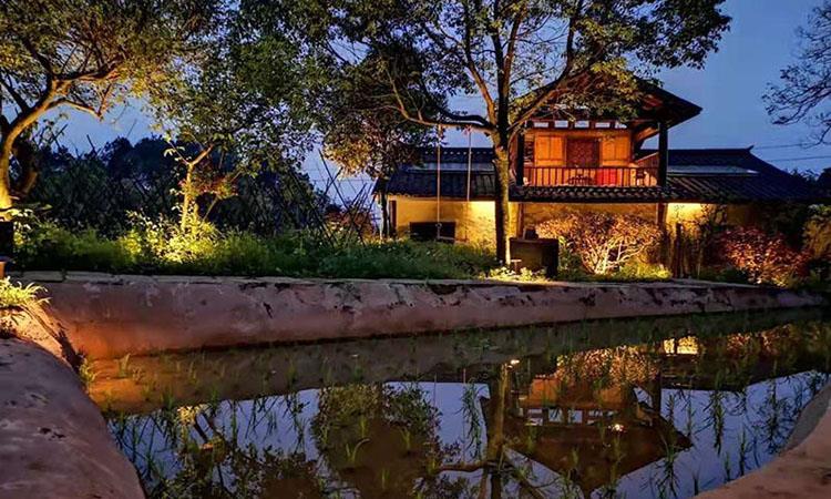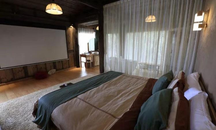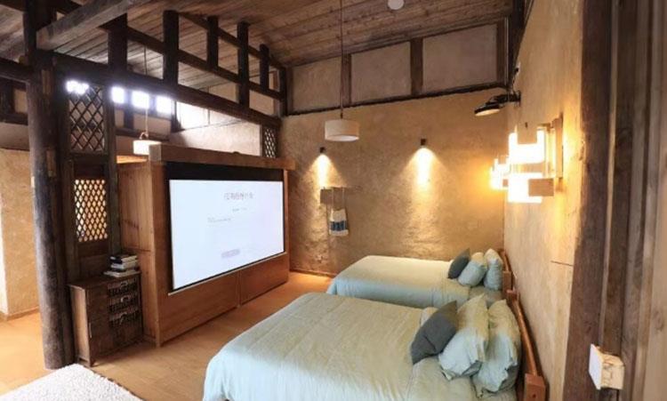 花境院子有兩個(gè)院落,共5個(gè)房間,傳統(tǒng)中式風(fēng)格的住宿空間,傳統(tǒng)木屋結(jié)構(gòu),晚上躺在床上看著星空,聽著稻花田里的蛙聲,聽著竹葉婆娑的沙沙聲,寧靜而美好。