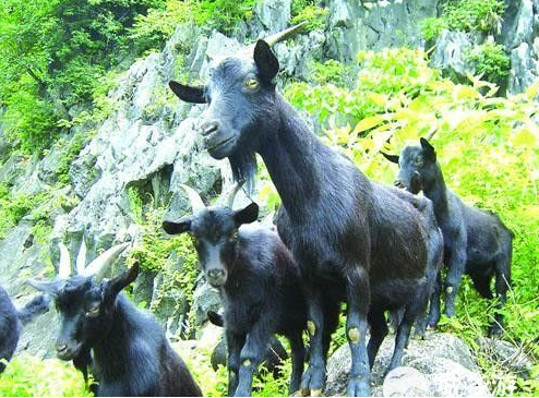 黑山羊體格中等,體軀勻稱,略呈長(zhǎng)方形;頭呈三角形,鼻梁平直,兩耳向前傾立,公、母羊絕大多數(shù)有角、有髯,公羊角粗大,呈鐮刀狀,略向后外側(cè)扭轉(zhuǎn),母羊角較小,多向后上方彎曲,向外側(cè)扭轉(zhuǎn)。毛被光澤好,大多為黑色,少數(shù)為白色、黃色和雜色。