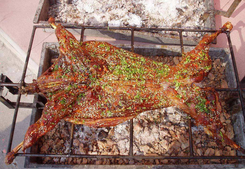 烤全羊是目前肉制品飲食中最健康最環(huán)保最綠色的美食了,烤全羊外表金黃油亮,外部肉焦黃發(fā)脆,內(nèi)部肉綿軟鮮嫩,羊肉味清香撲鼻,頗為適口,別具一格。