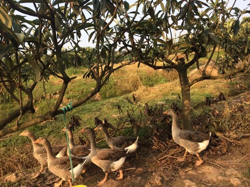 這些雞、鴨、鵝、晚上棲息樹上,白天林中覓食,跑斗跳飛無所不能,有些雞、鴨、鵝因?yàn)轶w格太好根本捉不到它,捉起來是很費(fèi)勁的,用網(wǎng)子都不一定網(wǎng)得到。甚至有的都在此生活到了五年、六年,因?yàn)檎娴氖翘y捉住了。