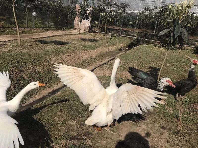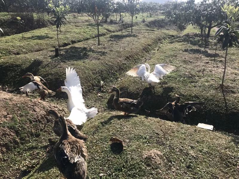 此地生態(tài)養(yǎng)殖80余畝,土雞、土鴨、土鵝、西鴨等100余只,都是莊主廢寢忘食一手撫養(yǎng)起來的,從雛雞、鴨、鵝到成雞、鴨、鵝、要經(jīng)歷18個月后才能長到三、四斤開外。