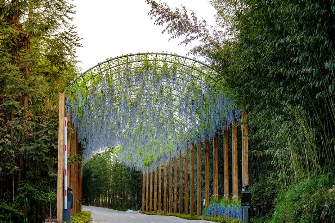 來到老鷹窩,入口便是幻夢般的紫藤花廊,拱形的長廊里粉黛韻紫萬千垂落,串串“花穗”隨風(fēng)搖擺,生機明媚。