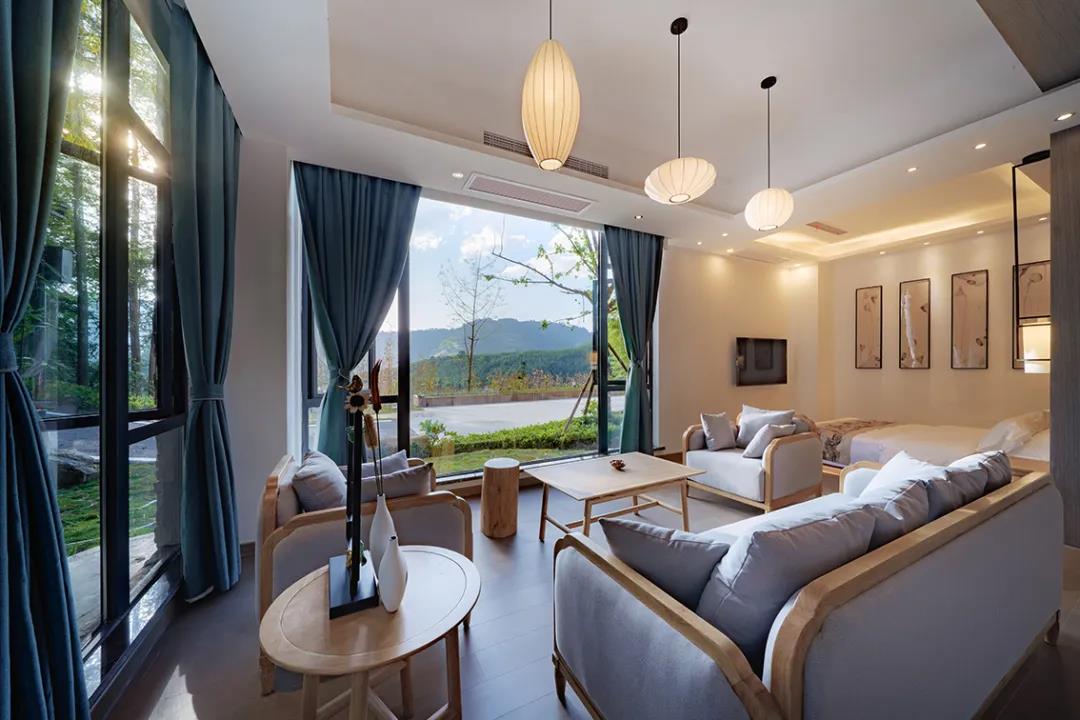 室外更有超大露臺,寬闊的視野讓游客私享浪漫山景,晴雨霧雪,在不同的天氣有截然不同的視覺享受。當(dāng)然,部分房間,室內(nèi)還配有超大書桌,揮毫潑墨、奮筆疾書更是愜意。