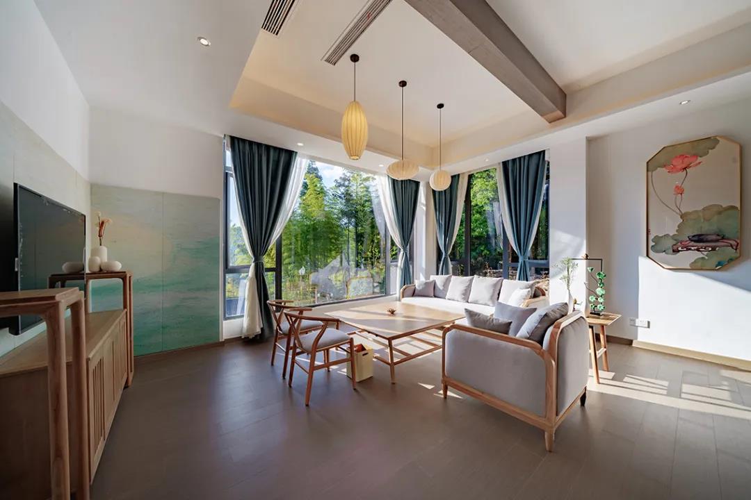 同時,民宿配套有約4萬平方米園林景觀和功能場地,包括文化休閑廣場、精品超市、多功能活動廳、會議室、商務(wù)服務(wù)中心、兒童樂園、茶藝廊、射箭場、長亭、荷塘、果園、鏡面水景等,并在周邊布局有“漫山花海”、“疊嶂茶山”、“幽竹閑步”、“閑翁漁釣”等景觀景點,給游客別樣的體驗。
