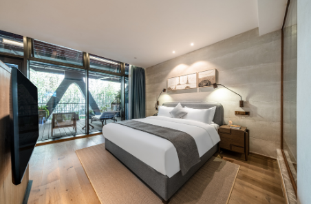 在這里,酒店更像是一個(gè)生活的體驗(yàn)場(chǎng),讓客人享受舒適自在的獨(dú)處時(shí)光,亦可開啟客人對(duì)于當(dāng)?shù)丨h(huán)境及生活方式的探索,展開人與自然、人與空間、人與生活的多維鏈接。利用在地文化特色,吸取當(dāng)?shù)刈匀粭l件優(yōu)勢(shì),就地取材,從藥材、樹木、石頭、泥土、麥穗等自然元素中,創(chuàng)造出生動(dòng)而別具特色的藝術(shù)氛圍。木質(zhì)家具,與親膚的棉麻質(zhì)感,材質(zhì)的交融與呼應(yīng),帶給客人獨(dú)特且舒適的體驗(yàn)。