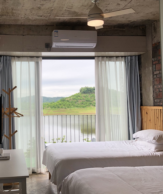 推開窗便可以欣賞碧水藍(lán)天白云的晴空、遠(yuǎn)方郁郁蔥蔥的山林好風(fēng)光,讓人心曠神怡!