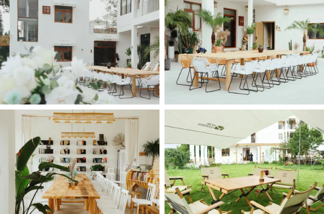 民宿設(shè)有書房、茶室、會議室、手工房、客房、多功能室等體驗空間且主要以餐飲、茶飲、研學(xué)為主要經(jīng)營項目,同時可提供住宿,各類派對、會議團(tuán)建、研學(xué)手工制作等體驗項目。