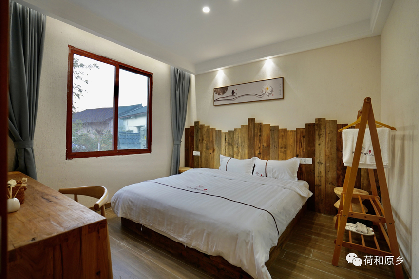 民宿集住宿、餐飲、農(nóng)耕體驗為一體客房裝飾雖不豪華,但各類配套設(shè)施一應(yīng)俱全蓮蓬、荷葉、荷花、芭茅等裝飾品帶有濃濃的荷鄉(xiāng)特色把室內(nèi)環(huán)境裝飾得清新雅致客房還保留了糧倉等原有農(nóng)房的部分設(shè)施游客還可以參與體驗石磨豆花制作工藝