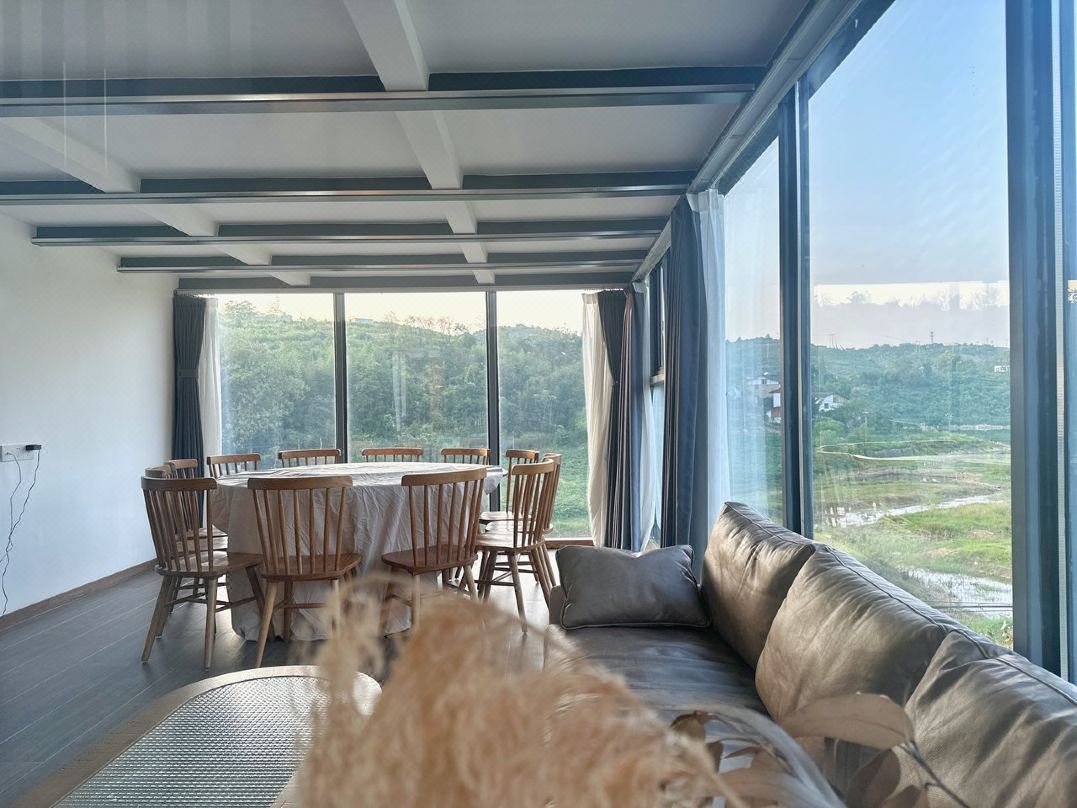 秋山隱森林營地美宿度假別墅在重慶超適合親子度假的森林露營美宿藏在歌樂山附近的世外桃源-秋山隱森林營地美宿,背靠竹海與山丘位置:重慶市沙坪壩區(qū)中梁鎮(zhèn)壞境民宿隱于山間,駕車沿山村小路緩緩行駛,兩層小樓在竹林間若隱若現(xiàn),民宿周邊比較清幽。可戶外天幕露營,燒烤,周末來這小住,過幾日隱奢的鄉(xiāng)野生活房間民宿一共兩層樓,4個房間,一房一景,山景環(huán)繞,每個房間都擁有超大落地窗,清晨拉開窗簾,山間吸氧,非常暇意。民宿體驗包院的話可以提供室內(nèi)室外設(shè)施設(shè)備,免費提供天幕露營,還可以自己做飯、燒烤哦!民宿也可以提供農(nóng)家菜、燒烤!農(nóng)家私房菜、真心安利燉雞湯,非常鮮美。民宿內(nèi)有投影、小朋友的讀物、室外有秋千、沙池,小朋友可以玩耍;大人可以機(jī)麻、天幕露營。附近也有很多小朋友大人玩耍的地方,車程幾分鐘哦!