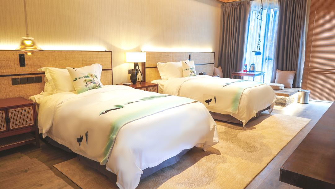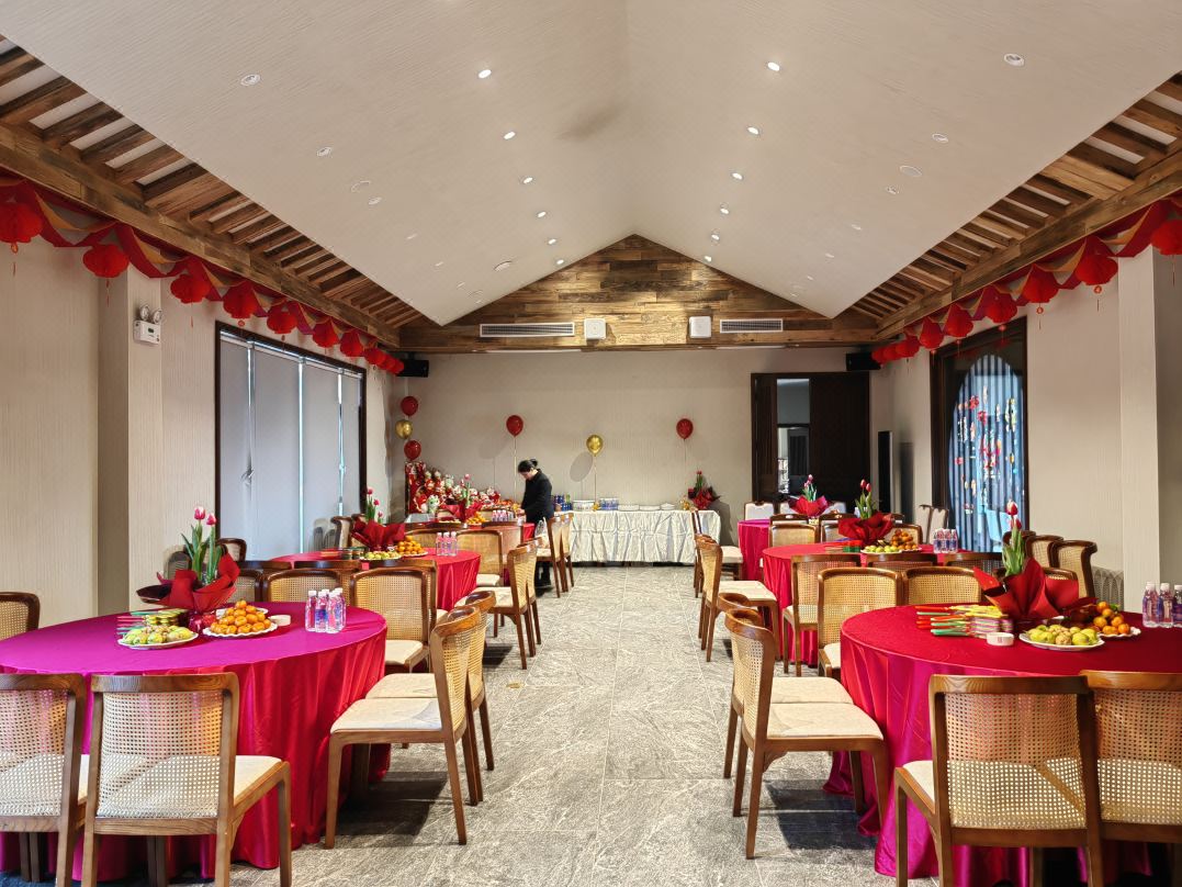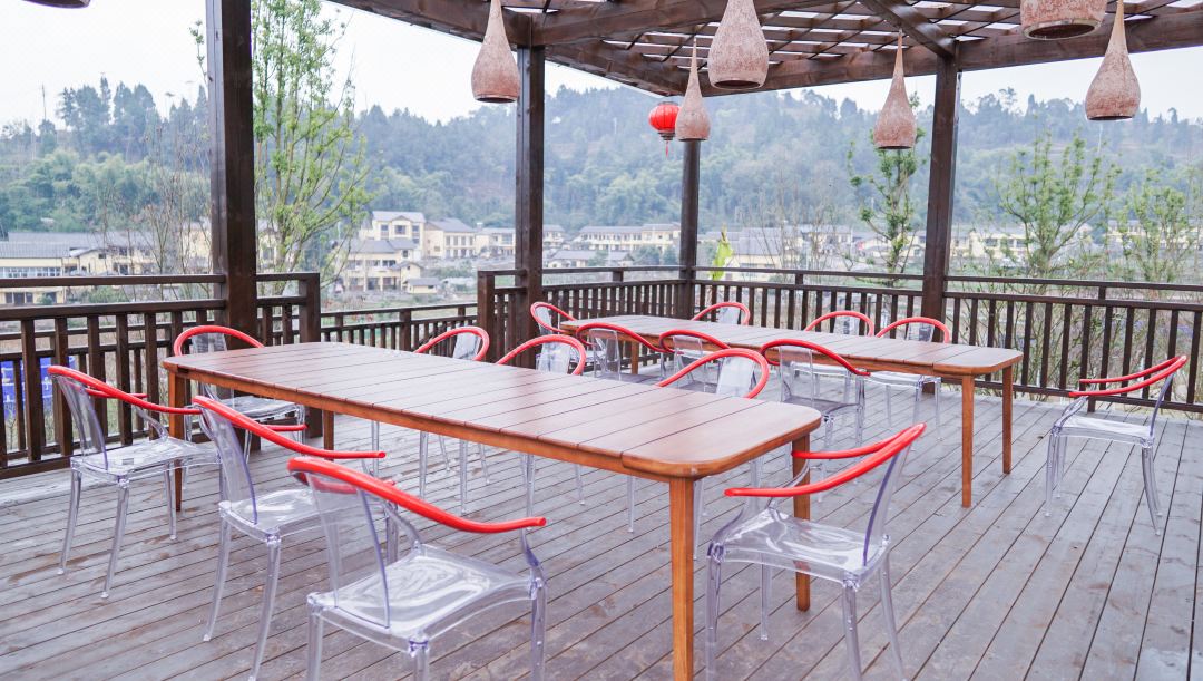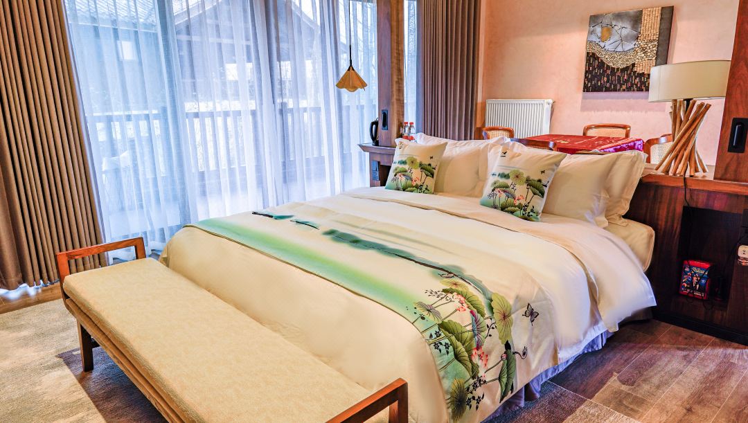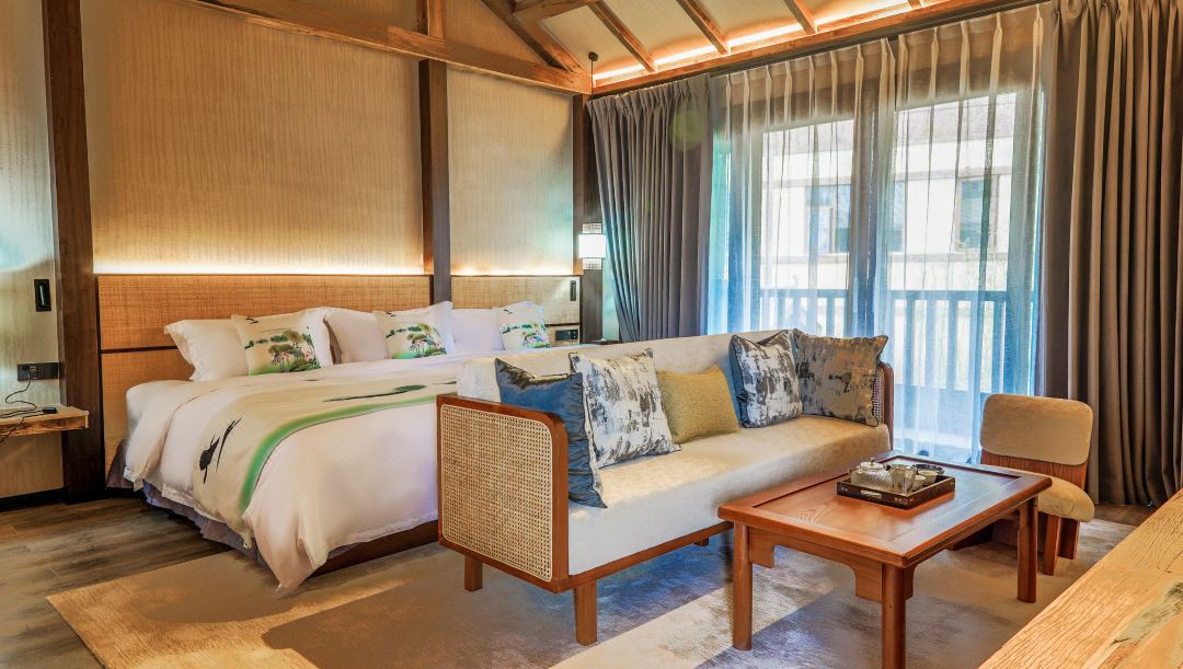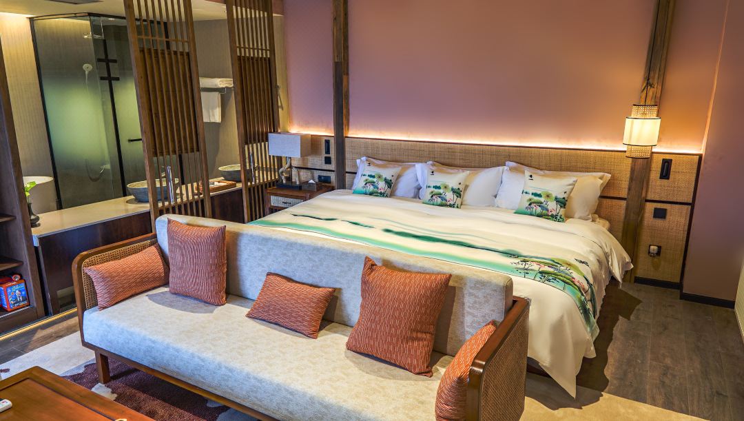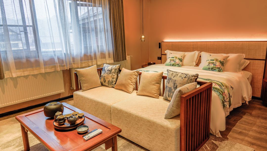 民宿共由9個獨立院落組成,其中設有6個以禪意命名的獨立院落,擁有多間套特色民宿客房,5間以 “大足古八景”為主題名稱的特色包房以及1個可供50人集中用餐的特色餐廳,并配有多個交易展示區(qū),禪茶休閑區(qū),是集親子、文創(chuàng)、娛樂為一體的度假綜合體。