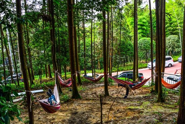 還有戶外的森林吊床,它是朋友們非常喜歡去玩耍的一個地方,也是納涼的一個好去處,朋友們睡在吊床上,享受著慢時光的生活,仿佛回到了仙境一般。。