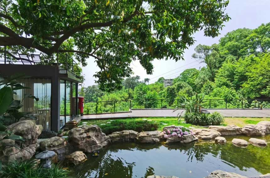 百年老樹(shù)旁的日式庭院 民宿是一棟三層的獨(dú)棟別墅,既是民宿,也是一家餐廳 超大的玻璃落地窗在陽(yáng)光的照射下閃閃發(fā)光💎一樓還有一個(gè)日式庭院,圓石小路圍繞著清澈池塘,一路延伸到門口的百年黃桷蘭邊🌳 民宿還有兩只可愛(ài)的“招財(cái)貓”🐱坐在這樣的“世外桃源”中,喝茶看書(shū)擼貓,也太治愈了吧