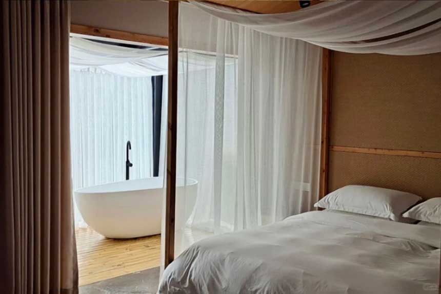 關(guān)于房間 民宿的房間是清新明亮的日式木質(zhì)風(fēng)格,從落地窗看出去,南山郁郁蔥蔥的美景盡收眼底⛰️當(dāng)然,zui愛(ài)的還是仙氣飄飄的紗幔床和可以泡泡浴的大浴缸🛁不論是拍照還是享受,都非常nice!房間還配備了地暖,簡(jiǎn)直是怕冷星人的福音啊🔥 除了常規(guī)的洗漱用品外,貼心的老板娘還給每個(gè)房間準(zhǔn)備了卸妝包,牙線,漱口水等,還有巴黎水和紅糖姜茶哦~不得不說(shuō)一句,老板娘太懂啦!