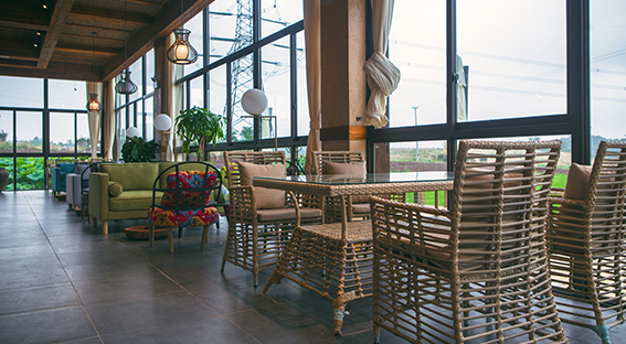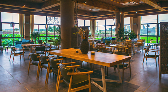 親近自然的咖啡廳亦是多功能廳,環(huán)境優(yōu)雅,音樂伴耳,可同時有100人進行享受