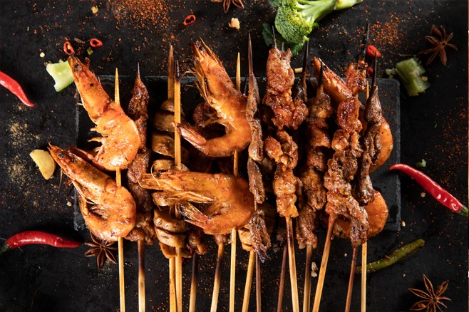肉烤得很不錯肉質(zhì)外焦里嫩吃起來很過癮肋排的地方薄薄的一層肉又入味又焦脆