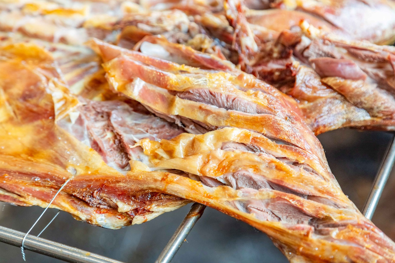 表面酥脆的一層皮輕輕一撥就開了鮮嫩的大腿肉讓人根本把持不住啊!羊烤好后送過來羊肉的香味撲面襲來,安逸!