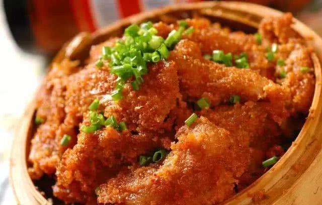 粉蒸肉用的是最好的胛子肉,四指寬的肥膘,經(jīng)過長達2個小時蒸制過程,肥而不膩,入口即化。