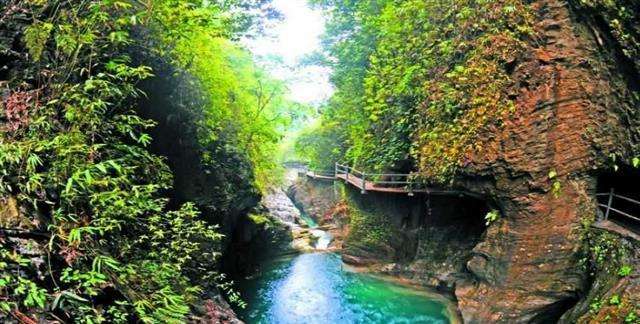 其中峽谷內(nèi)棧道全長(zhǎng)近7公里