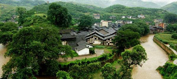 古鎮(zhèn)依山傍水而建,幢幢木屋磚舍依山分布