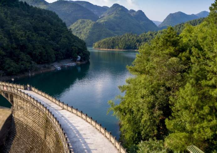 800畝水面曲彎秀美,四面環(huán)山峻逸,