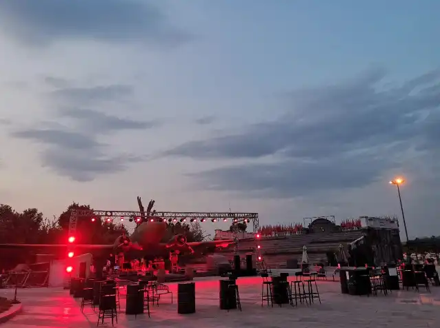 這樣的客棧,正好配上這樣的老板。老板帥氣熱情,今天客人不多,給我升級(jí)了二樓的河景房,又陪著我去影視城廣場(chǎng)喝啤酒吃大排檔,鹽菜回鍋肉口味絕佳。然后胡吹海聊,聽(tīng)大飛機(jī)主唱在大飛機(jī)前駐唱。剛過(guò)秋分,天有點(diǎn)涼,卻異常舒暢。