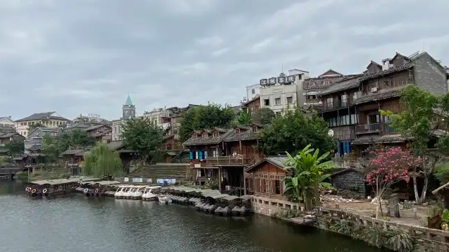 更妙的是,這里是空間和時(shí)間的雙重歸隱。這個(gè)客棧藏在一個(gè)小鎮(zhèn)邊上的河岸,這個(gè)小鎮(zhèn)又藏在重慶邊上的山里。 這里是兩江國(guó)際影視城,一個(gè)小鎮(zhèn)的方圓,卻藏滿(mǎn)了八十年前的整個(gè)重慶。 走在小鎮(zhèn)的街上,老建筑,老音樂(lè),老風(fēng)情,讓人一下子穿越到了上個(gè)世紀(jì)中,從空間和時(shí)間兩個(gè)緯度,帶著心靈一下實(shí)現(xiàn)了歸隱。