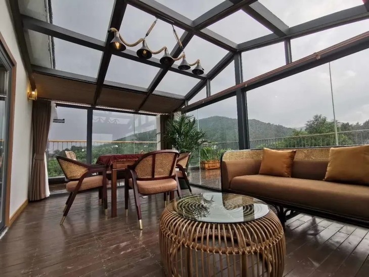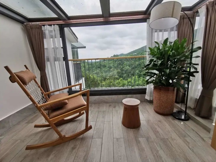 民宿內(nèi)也設(shè)有陽(yáng)臺(tái)站在高處看四周的山水又會(huì)是另一番景色