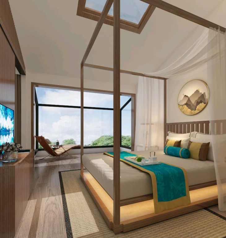 超大落地窗,與天然綠色大山相鄰每一扇窗外皆為景色山中而居,自帶無(wú)敵視野推窗見景,謐靜幽然