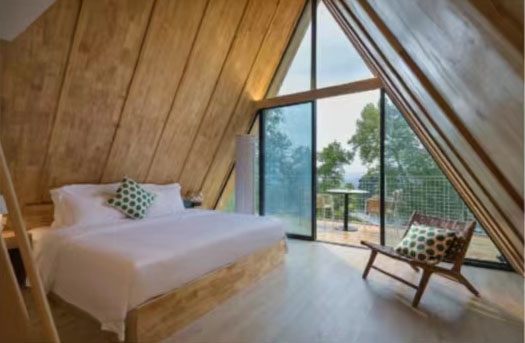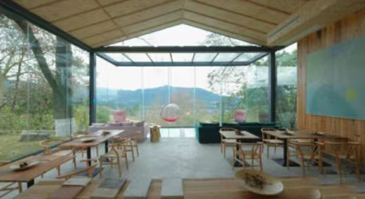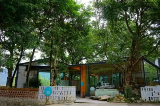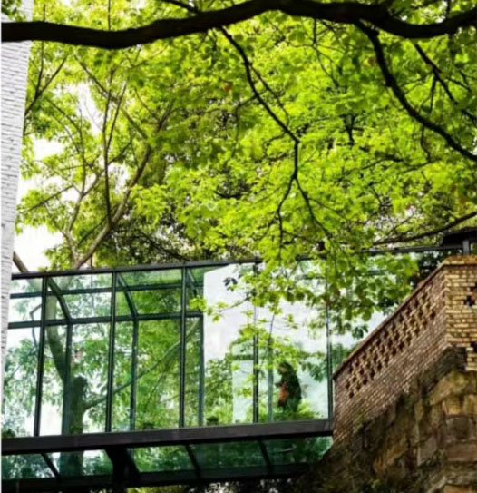 穿過(guò)一片郁郁蔥蔥的樹林經(jīng)由一條透明的玻璃長(zhǎng)廊,就抵達(dá)了星光民宿