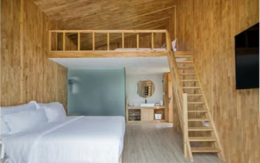 走進(jìn)屋內(nèi),木屋質(zhì)感的設(shè)計(jì)別出心裁簡(jiǎn)約的復(fù)式小別院,并不多加修飾1張2米大床,外加一個(gè)小陽(yáng)臺(tái)足夠2人居住空間,干凈又衛(wèi)生
