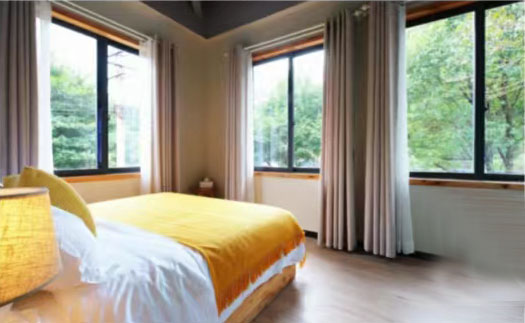 房間內(nèi)配備中央空調(diào)、智能馬桶、小米電吹風(fēng)以及小米熱水壺等 個(gè) 干凈整潔的獨(dú)立衛(wèi)生間,優(yōu)質(zhì)的洗浴設(shè)備讓人洗去一身疲憊,在山水之間愜意入眠玻璃房?jī)?nèi)用餐,觀影賞星