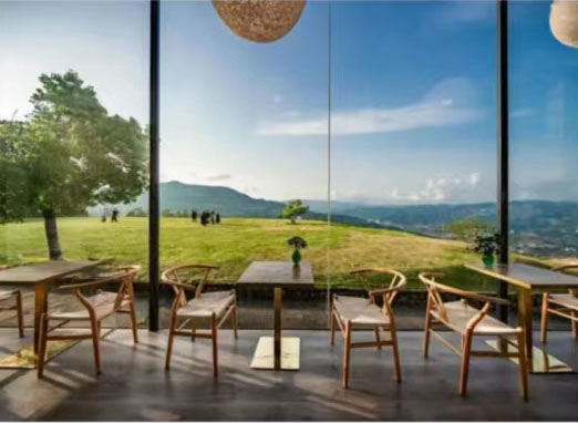 被植物包圍的玻璃房,將陽(yáng)光引入室內(nèi)抬頭就是一片瓦藍(lán)的天空 個(gè) 或是和自己的愛人、朋友喝上杯咖啡或是手捧一本讀物開始閱讀,愜意安然~