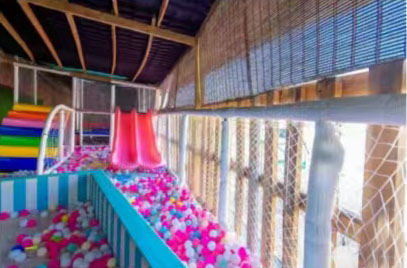 兒童娛樂(lè)區(qū):園區(qū)專為孩子們配備了兒童樂(lè)園,包括滑梯、蹦床,海洋球,沙池,媽媽再也不用擔(dān)心小朋友沒(méi)有地方玩啦~