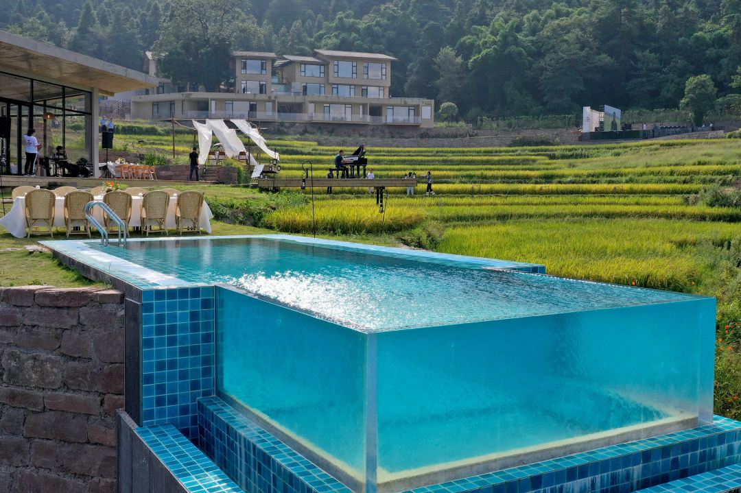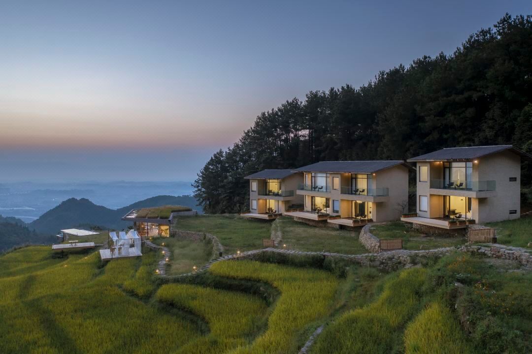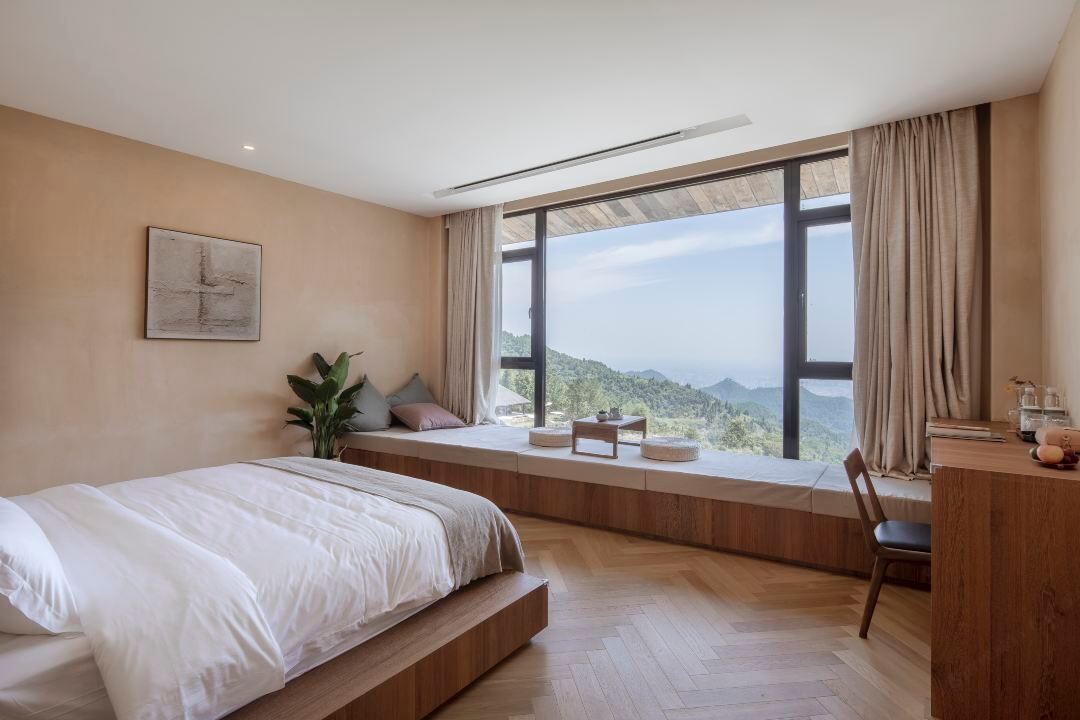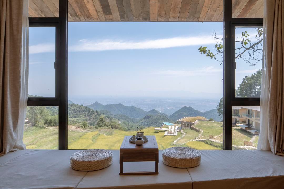曲徑通幽處,明月花木深,山是明月山,灣是雷家灣。飛蔦集民宿(墊江店)在此落座,整體建筑設(shè)計簡約,外觀泥磚土墻,素瓦青檐,還運用了很多玻璃材質(zhì),細品回廊、梯級、露臺和落地窗,即不缺少簡約的高級感,也不乏自然元素融合?头堪ㄈN房型,面積均在40平米不等,房內(nèi)一律泥土素色,并以實木、黃銅撞色組成鮮明風(fēng)格,公區(qū)搭配書吧、餐廳、泳池等業(yè)態(tài)。從客房直面峽谷眺望稻田疊落,伴隨著縹緲的云霧與朦朧的煙雨,百年樹齡的老木環(huán)繞,體驗質(zhì)樸從容的生活,感受人與自然的融合,呈獻奇妙山野。