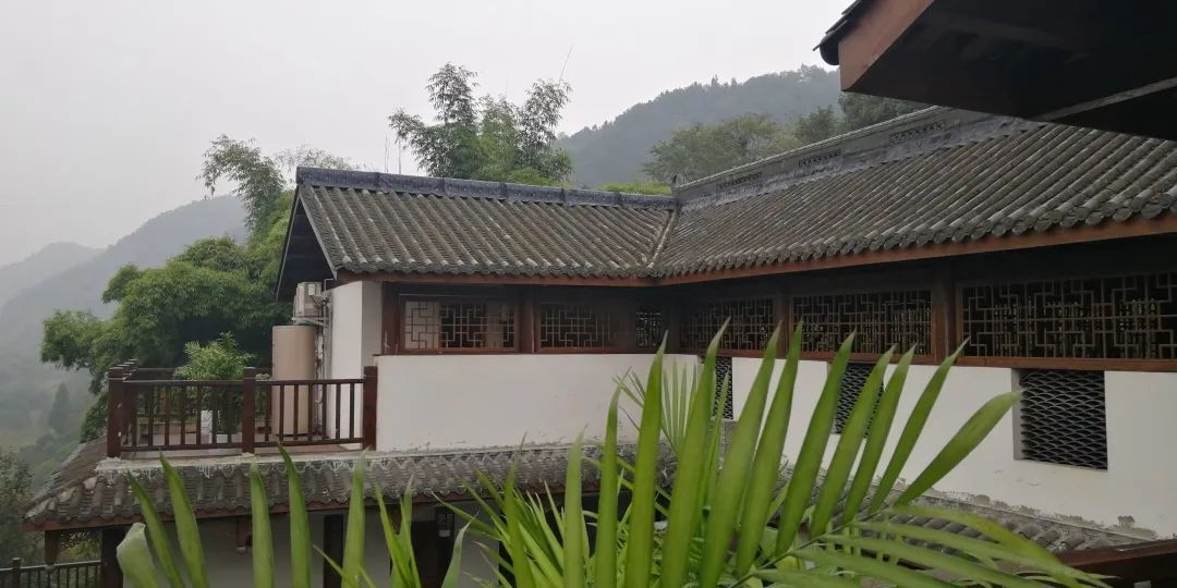 青磚白墻,飛檐翹角,山景與天色相得益彰。走在山明竹隱的庭院中,仿佛置身于蘇軾筆下的鄉(xiāng)野隱居之地。