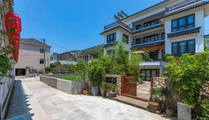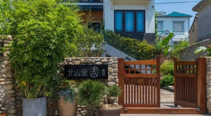 【北山里·素園】民宿,全稱是“枇杷花開·北山里·素園”。隱匿于白巖山腳下的村莊里,從大馬路要拐幾個(gè)彎才能尋摸著這幢白墻黛瓦的建筑。