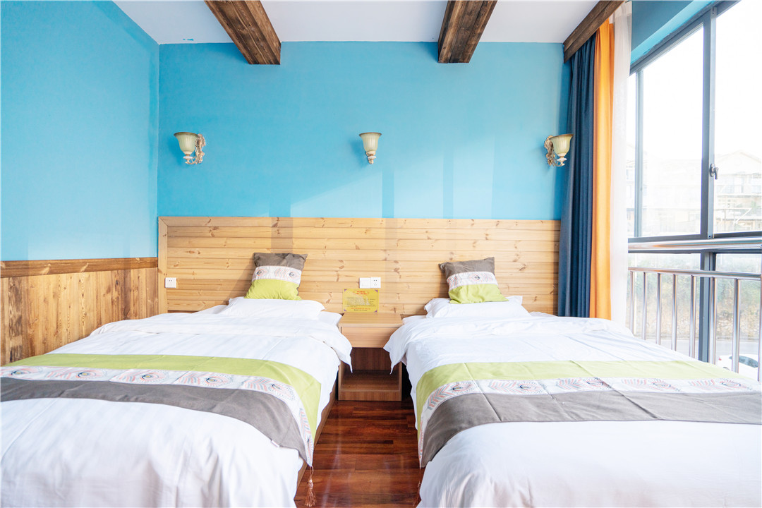 客房:能同時入住37人,房型有標(biāo)間、三人間、大床房、套間,房間均配有中央熱水器,24小時供應(yīng)熱水,床單被套一客一換。
