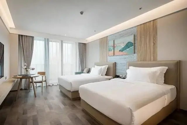 酒店總面積13600㎡,由藝術(shù)大堂、星空書吧、四季庭院、音樂(lè)酒吧、白云餐廳、山語(yǔ)會(huì)議廳以及138間(套)客房組成。