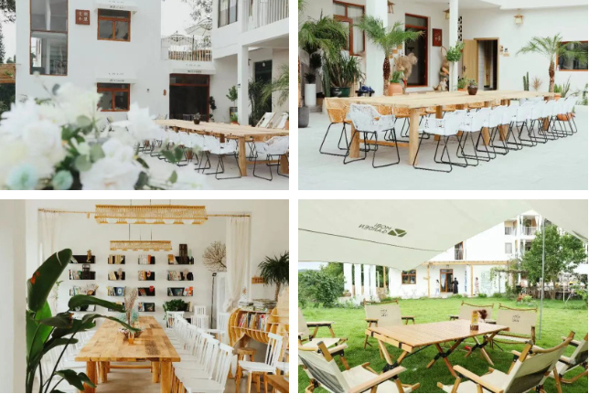 民宿設(shè)有書(shū)房、茶室、會(huì)議室、手工房、客房、多功能室等體驗(yàn)空間且主要以餐飲、茶飲、研學(xué)為主要經(jīng)營(yíng)項(xiàng)目,同時(shí)可提供住宿,各類派對(duì)、會(huì)議團(tuán)建、研學(xué)手工制作等體驗(yàn)活動(dòng),單場(chǎng)可接待活動(dòng)人數(shù)約200人左右。