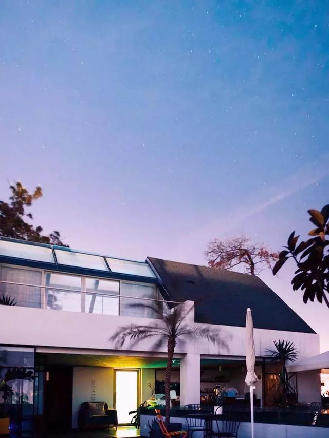 這里有吃有住有玩,一樓有一個叫「席間」的小餐廳和露天的網(wǎng)紅泳池,二樓是客房和露臺咖啡廳,而房子的背后還有個后花園。