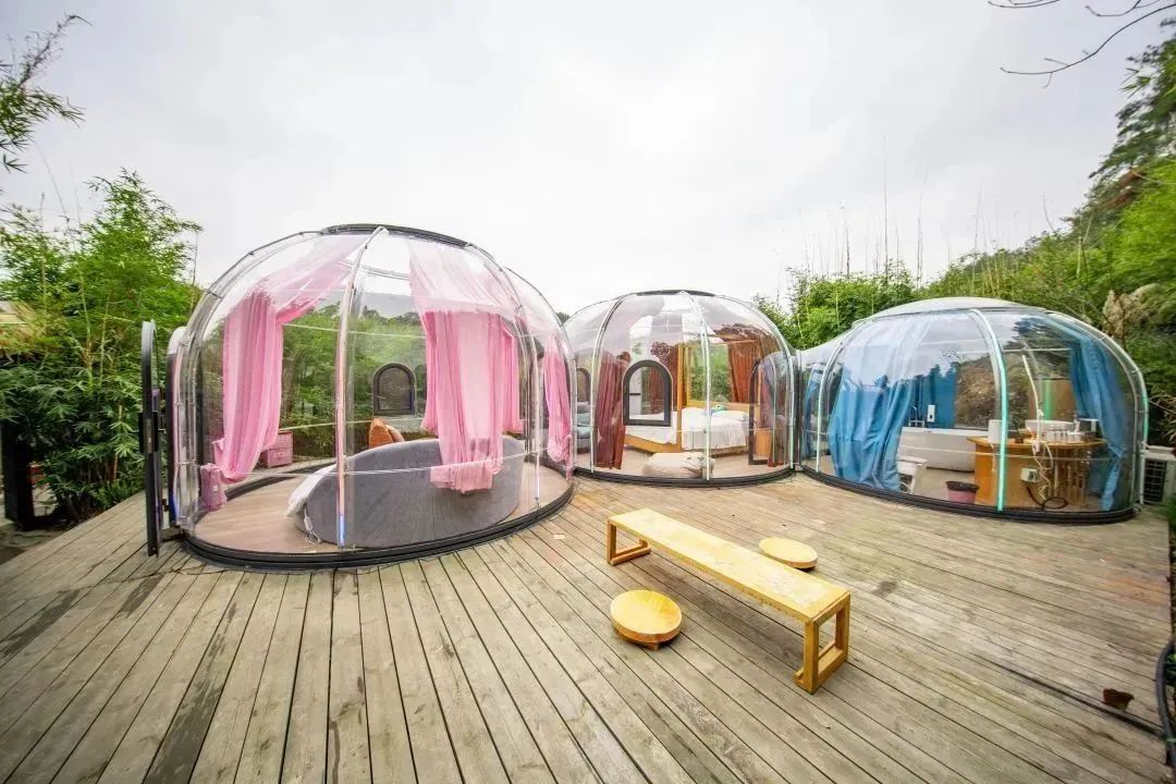 這里有以十二星座+仙女座命名的13間星空宿,獨(dú)立的大泡泡帶著并列的小泡泡,入住后,專屬于房客的泡泡星座燈就會點(diǎn)亮,仰望星空,倚山而眠,可在此感受專屬于武隆的自然浪漫。
