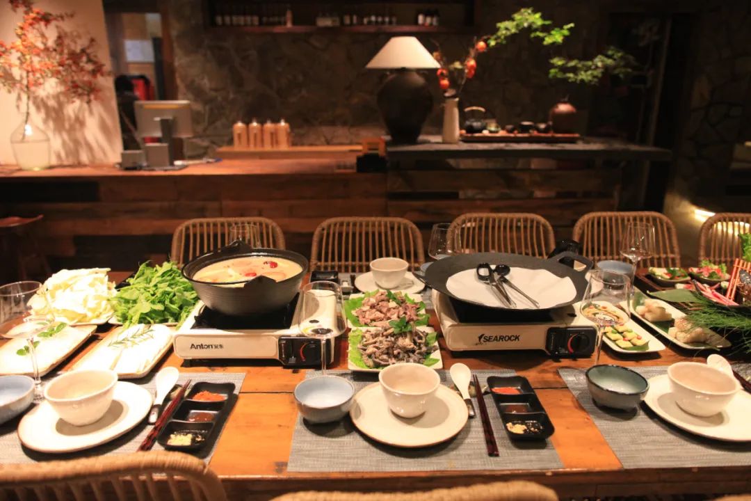 民宿前有500平方米露天庭院,在樹蔭下用餐、圍爐煮茶、燒烤很愜意。毗鄰20畝松林,可聽松風(fēng)觀云海,是露營、生日派對、團建的好場所。