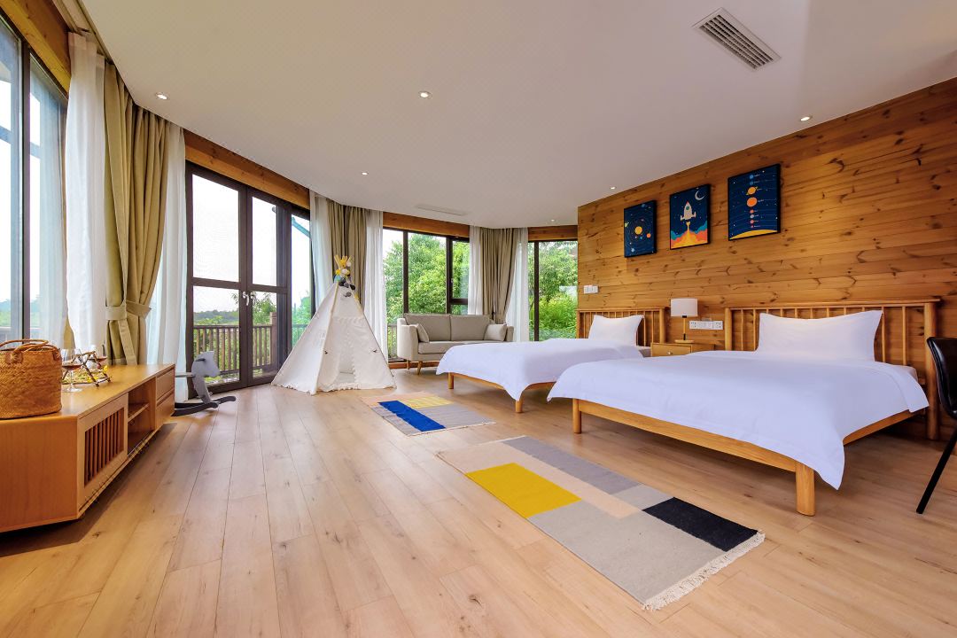 魯能美麗鄉(xiāng)村位于江津現(xiàn)代農(nóng)業(yè)園區(qū)核心區(qū)域內(nèi),瀕臨長江,地形以淺丘為主,富硒資源富集,氣候溫潤。距重慶主城僅1小時(shí)車程、江北國際機(jī)場(chǎng)80分鐘車程,到江津城區(qū)20分鐘。 重慶江津魯能美麗鄉(xiāng)村是魯能集團(tuán)傾心打造的西南田園生態(tài)旅居目的地,通過融入田園風(fēng)光,開發(fā)適應(yīng)鄉(xiāng)村新式生活方式的旅居產(chǎn)品,打造鄉(xiāng)村旅游新形態(tài),實(shí)現(xiàn)幸福度假,創(chuàng)造美好生活。 星選系列民宿是魯能特色民宿品牌之一,以“野奢、自然、探索、生態(tài)、簡約”為打造理念,目前已開發(fā)房車營地、帳篷營地、桃花驛、白鷺源四款精選民宿產(chǎn)品,滿足不同度假客群追求異質(zhì)化住宿體驗(yàn)的需求。有多種房型,共計(jì)60余間,可接待游客100余人。除住宿產(chǎn)品外,美麗鄉(xiāng)村還配套生態(tài)餐廳、多功能會(huì)議廳(滿足300人接待)、農(nóng)產(chǎn)品展銷廳、皮劃艇體驗(yàn)、兒童游樂場(chǎng)、蔬果采摘、11人制真草足球場(chǎng)、籃球場(chǎng)、網(wǎng)球場(chǎng)、CS基地等旅游產(chǎn)品,為旅人帶來一站式鄉(xiāng)村度假體驗(yàn)。 魯能美麗鄉(xiāng)村不僅能看得見遠(yuǎn)山,望得見近水,還能感受真正的鄉(xiāng)愁。