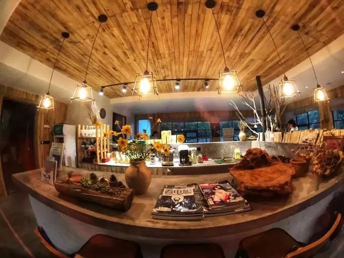這是一間黑山谷附近的民宿,復古溫馨的裝潢盡顯店主的文藝氣息。白天可以泡上一壺茶,晚上可以和月亮對飲。,精美的擺件與瓶栽點綴在屋子里不同的位置,文學與旅行的書籍擺滿了整排書架。沏一壺茶,或是點一杯咖啡,選擇一本感興趣的書,坐在泛著古老漣漪的木桌旁,在去黑山谷的途中來此感受時光靜淌。