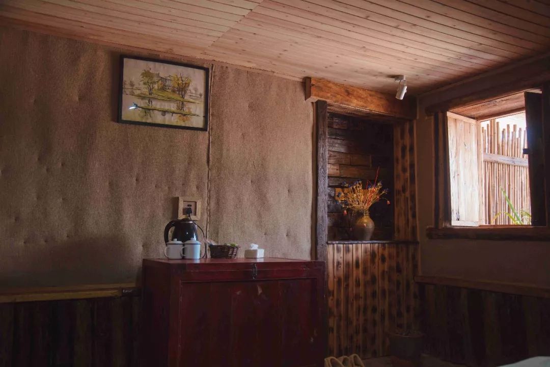 改造出的11居,被寬闊的院落連接,一間茶室,一間小酒吧、一間壩壩餐廳,還有13間土屋客房,每間客房都有不同之處,在中式古樸的裝修風格中,有榻榻米大通鋪,有古代的大床,還有可以讓你感受對鏡貼花黃的老式梳妝臺,盡管每個屋都安了空調(diào),但冬暖夏涼的土屋卻讓人更愿意享受大自然的溫柔與呵護。