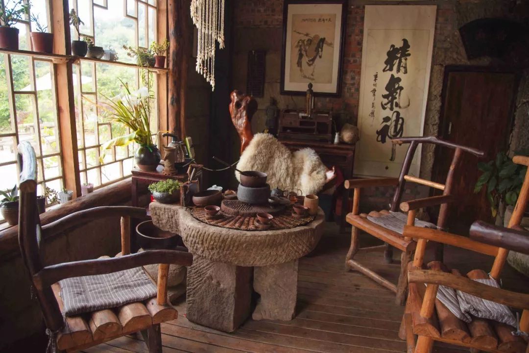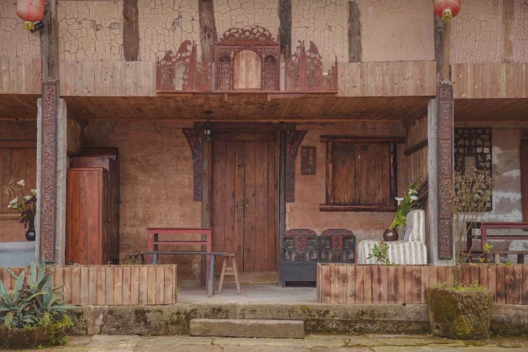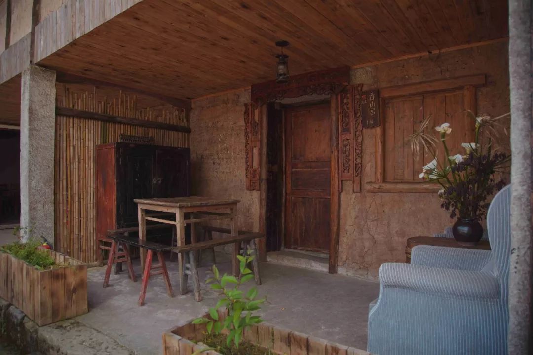 文藝十足的茶室原本只是是一間農(nóng)村廚房,而復古時尚的酒吧則是以前早已坍塌的豬圈改造……裝修期間,關懷常在雙寨山周圍轉悠,碰到有房子施工的,他就趕忙奔過去,“當時還沒人重視老的物件,我就隨便撿、隨便拿。”